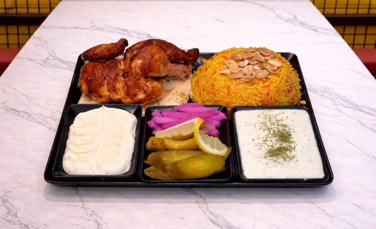 mit Reis, Joghurt-Gurken-Salat, fr. Gemüse, eingel. Gurken & Knoblauchsoße