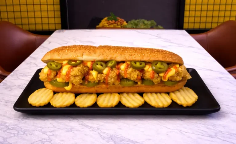 Zinger Stück, Cheddar, Scharfsoße, Coleslaw & Pommes